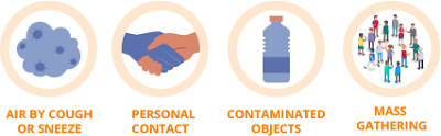 कोरोनाव्हायरस रोग प्रामुख्याने संसर्ग झालेल्या व्यक्तीस खोकला किंवा शिंकताना संपर्काद्वारे पसरतो. जेव्हा एखादी व्यक्ती एखाद्या पृष्ठभागावर किंवा त्या वस्तूवर विषाणू असलेल्या वस्तूला स्पर्श करते तेव्हा त्याचे डोळे, नाक किंवा तोंड स्पर्श करते तेव्हा ते देखील पसरते.